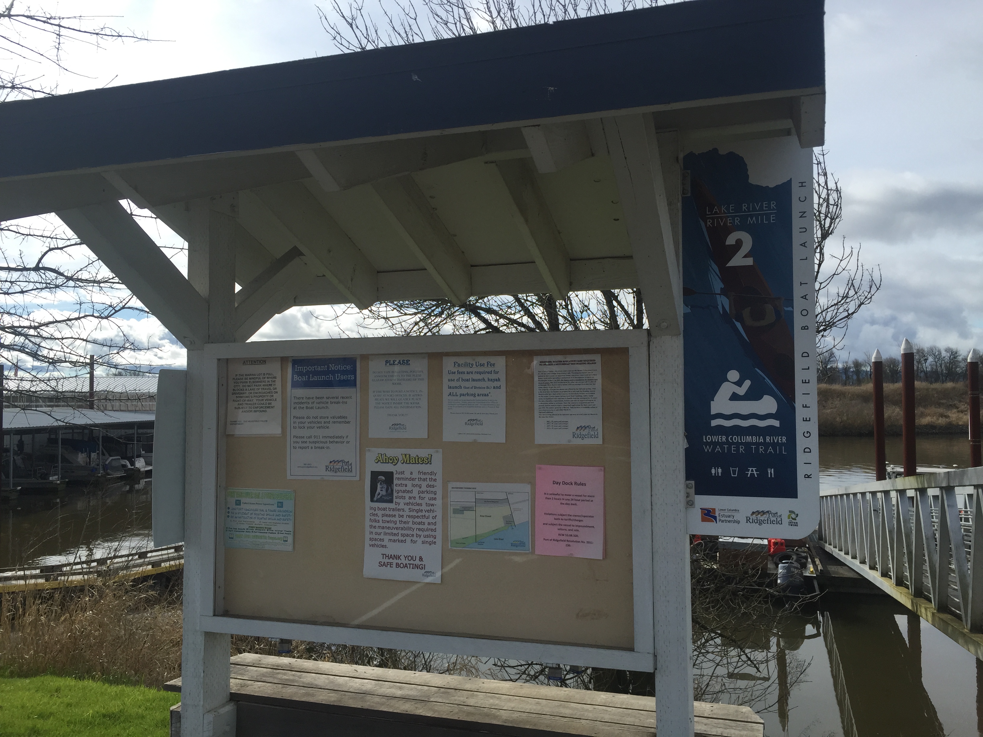 Public boat ramp with docks on Lake River. There is a small picnic area with tables next to the parking lot. Kayaks of numerous types are available for rent at Ridgefield Kayak Rentals, just a short walk from the boat ramp. Non-motorized boats often launch from the grassy area next to the boat ramp. There is also dedicated kayak dock one, very long block north of the boat ramp on Division St. The Ridgefield National Wildlife Refuge makes this a great spot for birding. Please remember however, that there is no access to the refuge from the water. The site also has a small transient boat tie up.